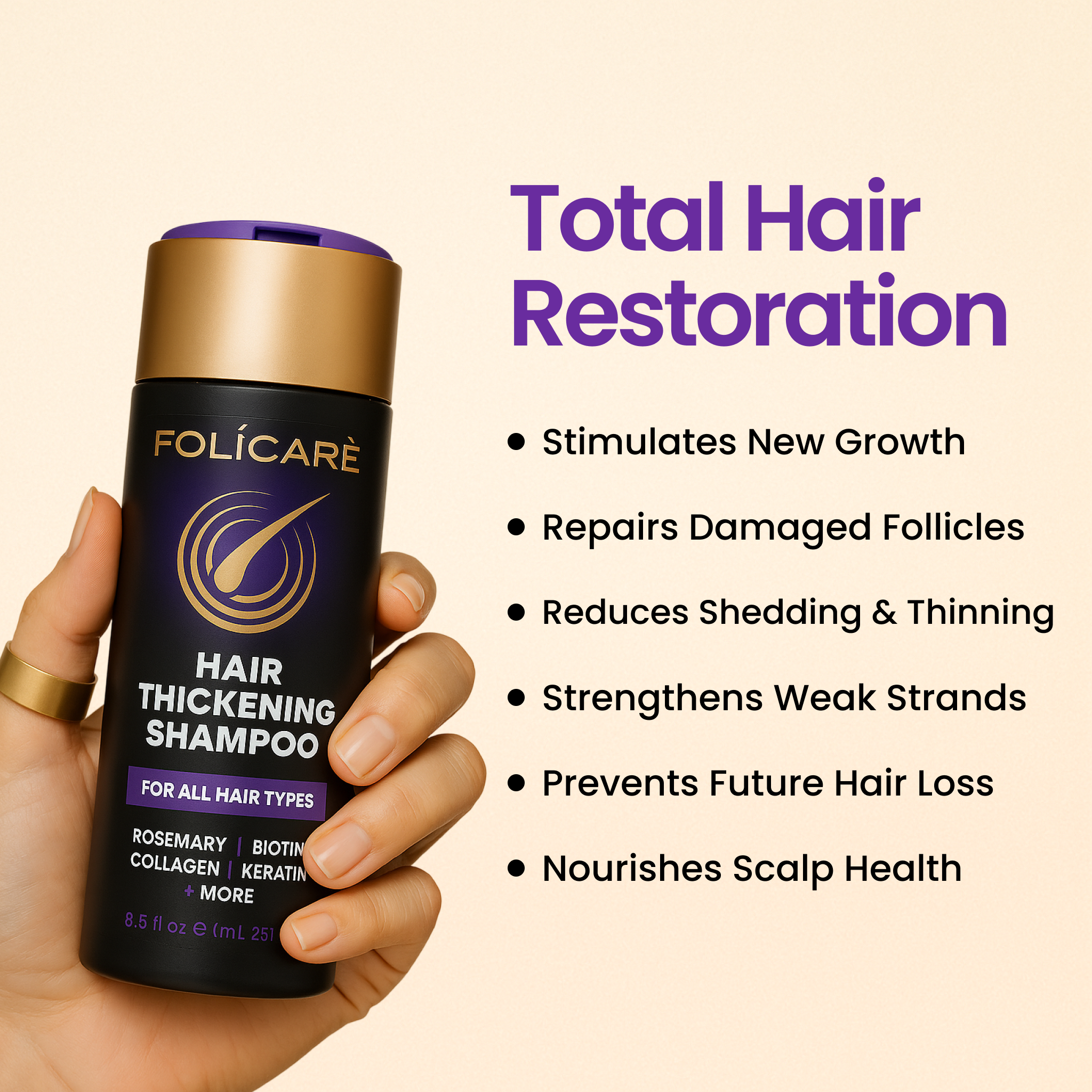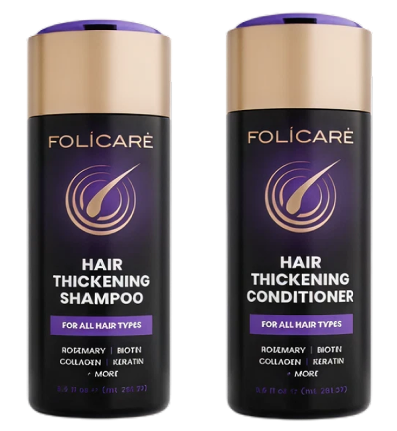 Struggling with thinning, shedding hair? Folicare’s Hair Growth Bundle — a dermatologist-developed shampoo and conditioner duo — delivers instant volume, less shedding, and faster new growth with biotin, collagen, rosemary, and keratin. In just weeks, baby hairs begin sprouting while strands feel stronger, fuller, and more radiant. Lightweight yet nourishing, this USA-made, sulfate- and paraben-free system transforms thin, lifeless hair into thicker, healthier hair you can see and feel.