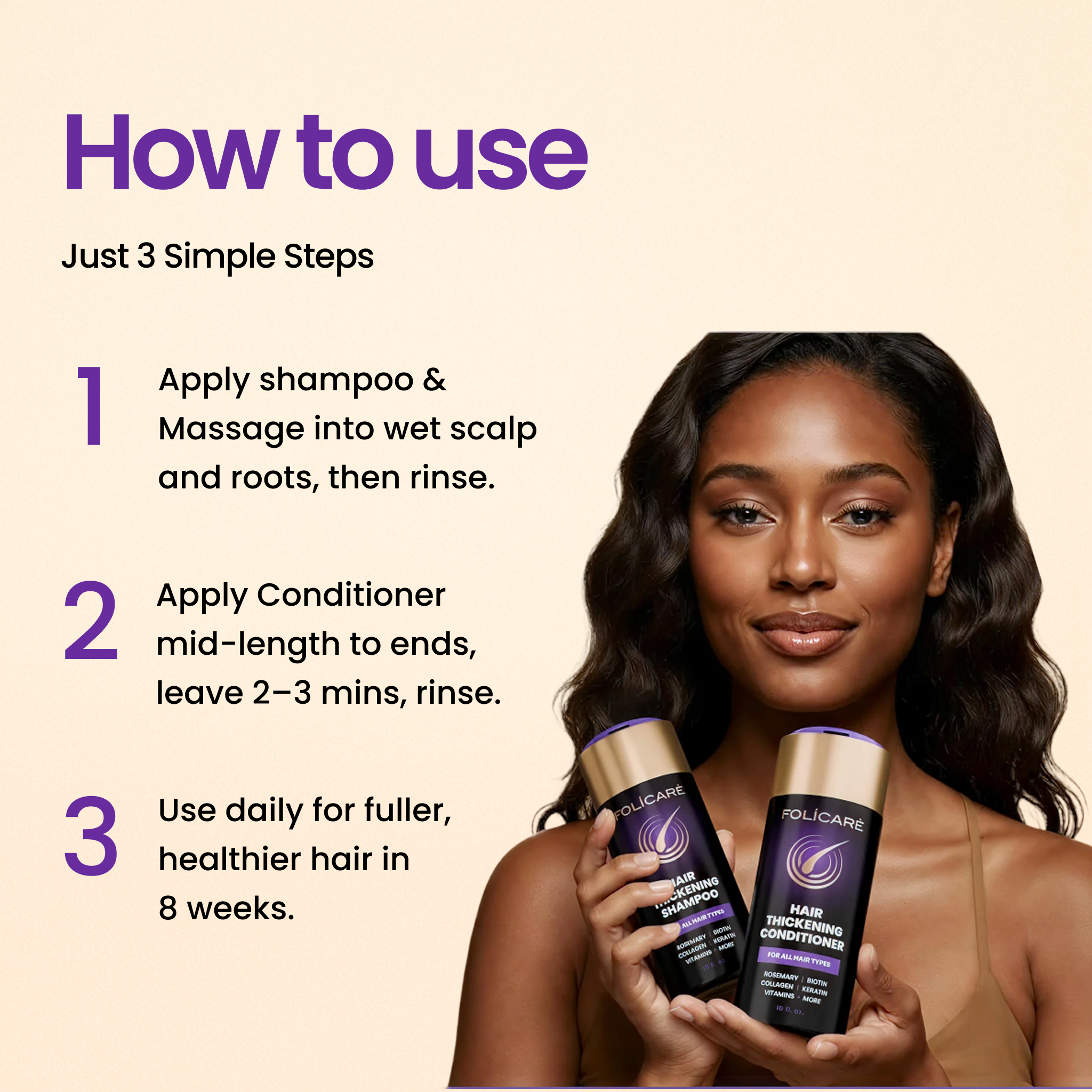 3. Consistency - Use daily for best results — visible fullness and healthier growth in 8 weeks.
