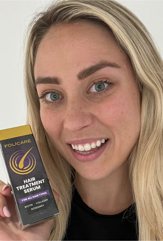 Results based on consistent use of Folicare Hair Serum. Individual results may vary.